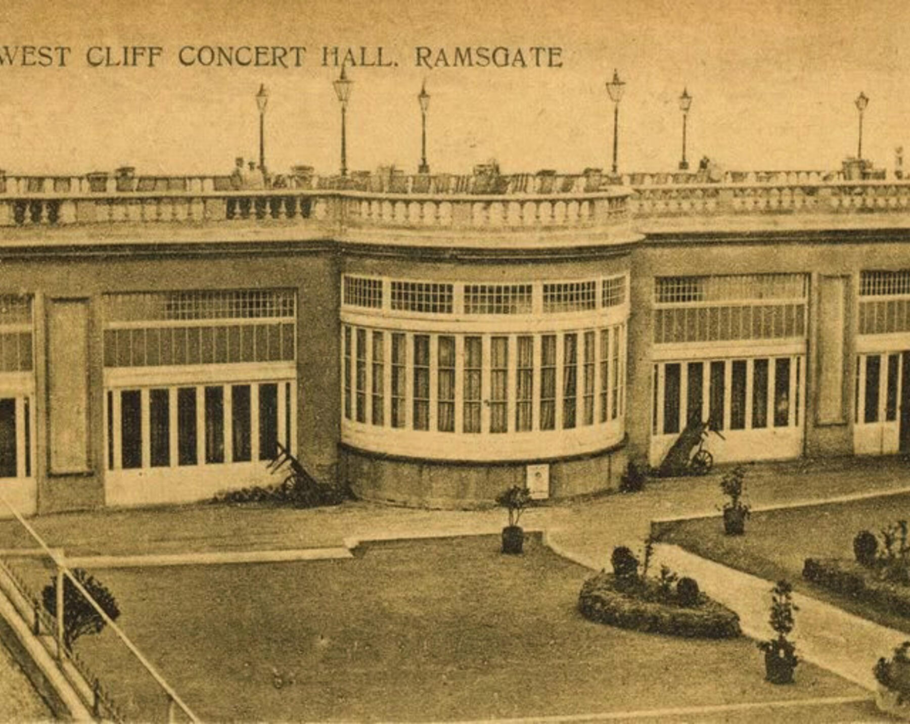 Before the Music Hall was constructed in 1914 the site was an Italian Garden complete with a bandstand. To make room for the new music hall the chalk was dug out of the cliff by hand!The hall was opened 2 days before the outbreak of World War I in 1914.The semi circular extension and raised gardens were added to the Music Hall in the 1930's.